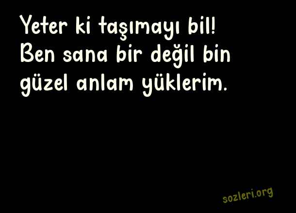 Yeter ki taşımayı bil! Ben sana bir değil bin güzel anlam yüklerim. ( Mest Eden Aşk )