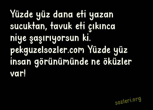 Yüzde yüz dana eti yazan sucuktan, tavuk eti çıkınca niye şaşırıyorsun ki. Yüzde yüz insan görünümünde ne öküzler var! ( Öküz Aşk )