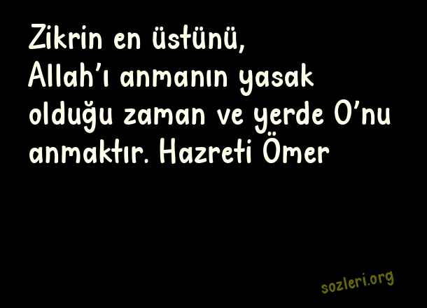 Zikrin en üstünü, Allah’ı anmanın yasak olduğu zaman ve yerde O’nu anmaktır. Hazreti Ömer ( Allah Aşkı )