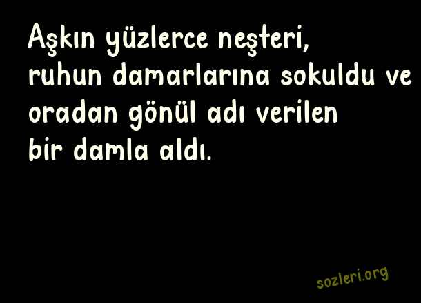 Aşkın yüzlerce neşteri, ruhun damarlarına sokuldu ve oradan gönül adı verilen bir damla aldı. ( Aşka Dair Sözler )