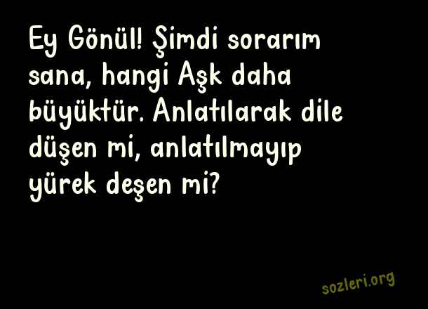 Ey Gönül! Şimdi sorarım sana, hangi Aşk daha büyüktür. Anlatılarak dile düşen mi, anlatılmayıp yürek deşen mi? ( Aşka Dair Sözler )