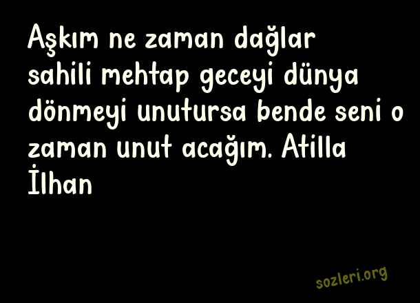Aşkım ne zaman dağlar sahili mehtap geceyi dünya dönmeyi unutursa bende seni o zaman unut acağım. Atilla İlhan ( Aşkı Anlatan Sözler )