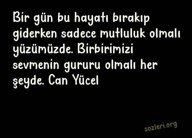 Bir gün bu hayatı bırakıp giderken sadece mutluluk olmalı yüzümüzde. Birbirimizi sevmenin gururu olmalı her şeyde. Can Yücel ( Aşkı Anlatan Sözler )