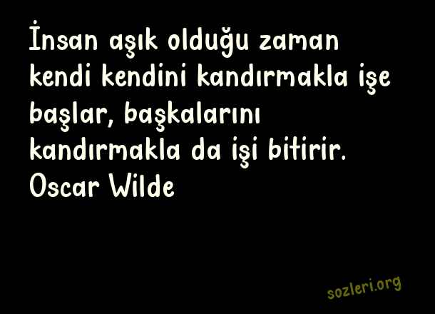 İnsan aşık olduğu zaman kendi kendini kandırmakla işe başlar, başkalarını kandırmakla da işi bitirir. Oscar Wilde ( Aşkı Anlatan Sözler )