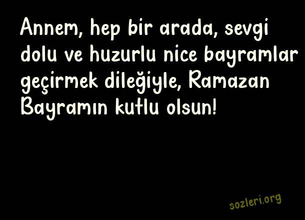 Annem, hep bir arada, sevgi dolu ve huzurlu nice bayramlar geçirmek dileğiyle, Ramazan Bayramın kutlu olsun! ( Kaynanaya Bayram )