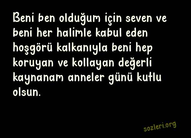 Beni ben olduğum için seven ve beni her halimle kabul eden hoşgörü kalkanıyla beni hep koruyan ve kollayan değerli kaynanam anneler günü kutlu olsun. ( Kaynanaya Anneler Günü )