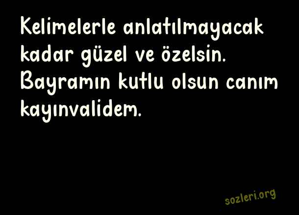 Kelimelerle anlatılmayacak kadar güzel ve özelsin. Bayramın kutlu olsun canım kayınvalidem. ( Kaynanaya Bayram )