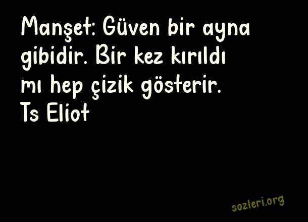 Manşet: Güven bir ayna gibidir. Bir kez kırıldı mı hep çizik gösterir. Ts Eliot ( Ayna )