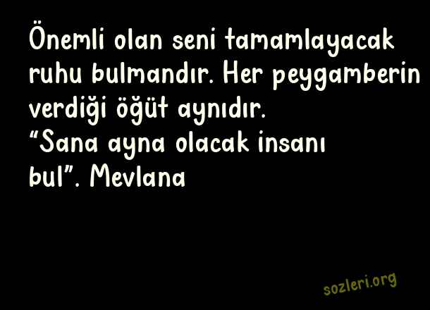Önemli olan seni tamamlayacak ruhu bulmandır. Her peygamberin verdiği öğüt aynıdır. “Sana ayna olacak insanı bul”. Mevlana ( Ayna )