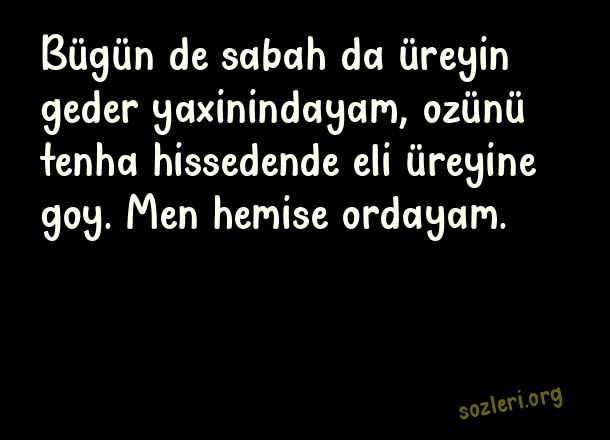 Bügün de sabah da üreyin geder yaxinindayam, ozünü tenha hissedende eli üreyine goy. Men hemise ordayam. ( Azerice Aşk )