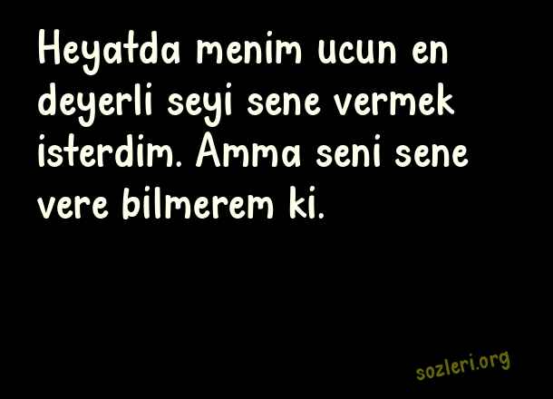 Heyatda menim ucun en deyerli seyi sene vermek isterdim. Amma seni sene vere bilmerem ki. ( Azerice Aşk )