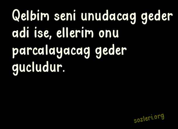 Qelbim seni unudacag geder adi ise,ellerim onu parcalayacag geder gucludur.