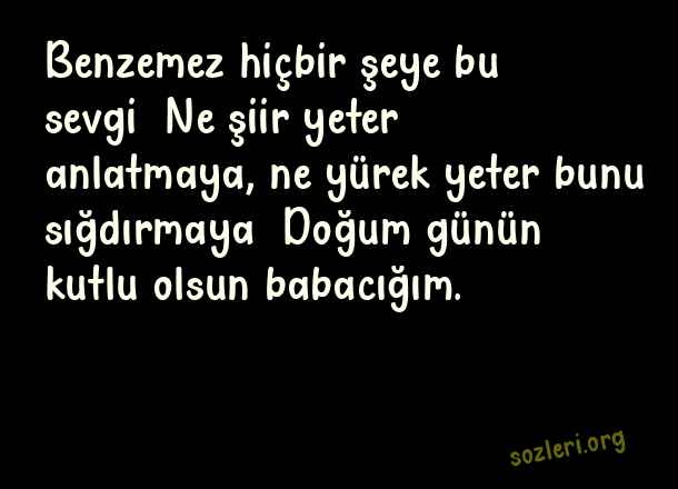 Benzemez hiçbir şeye bu sevgi… Ne şiir yeter anlatmaya, ne yürek yeter bunu sığdırmaya… Doğum günün kutlu olsun babacığım. ( Kızdan Babaya Doğum Günü )