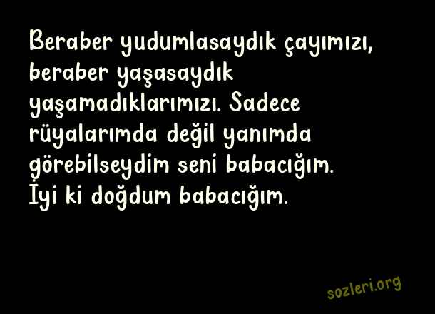 Beraber yudumlasaydık çayımızı, beraber yaşasaydık yaşamadıklarımızı. Sadece rüyalarımda değil yanımda görebilseydim seni babacığım. İyi ki doğdum babacığım. ( Ölen Babaya Doğum Günü )