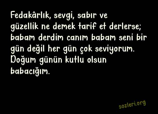 Fedakârlık, sevgi, sabır ve güzellik ne demek tarif et derlerse; babam derdim canım babam seni bir gün değil her gün çok seviyorum. Doğum günün kutlu olsun babacığım. ( Babaya Doğum Günü )