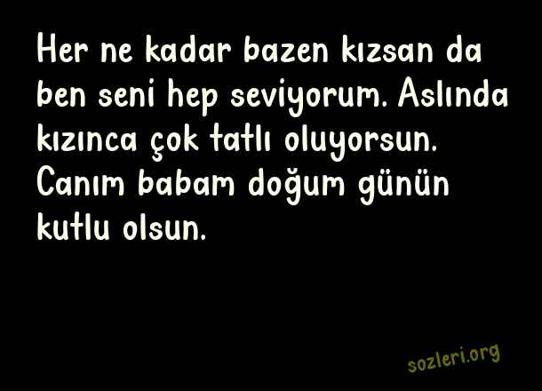 Her ne kadar bazen kızsan da ben seni hep seviyorum. Aslında kızınca çok tatlı oluyorsun. Canım babam doğum günün kutlu olsun. ( Babaya Doğum Günü )
