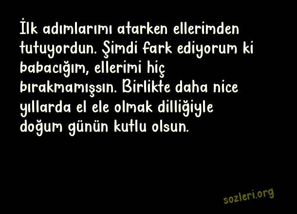 İlk adımlarımı atarken ellerimden tutuyordun. Şimdi fark ediyorum ki babacığım, ellerimi hiç bırakmamışsın. Birlikte daha nice yıllarda el ele olmak dilliğiyle doğum günün kutlu olsun. ( Babaya Doğum Günü )