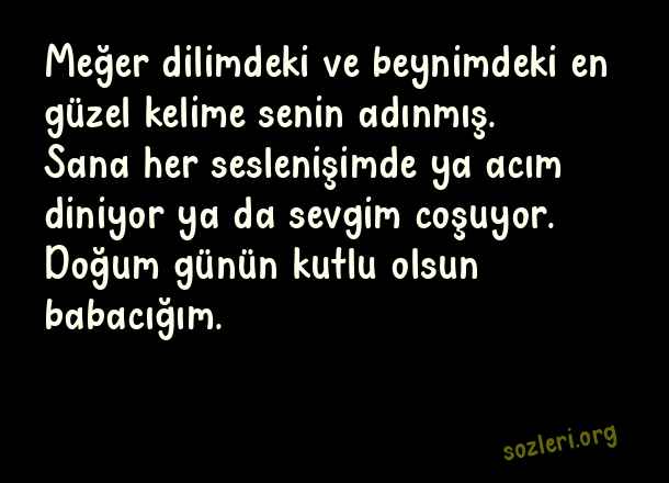 Meğer dilimdeki ve beynimdeki en güzel kelime senin adınmış. Sana her seslenişimde ya acım diniyor ya da sevgim coşuyor. Doğum günün kutlu olsun babacığım. ( Babaya Doğum Günü )