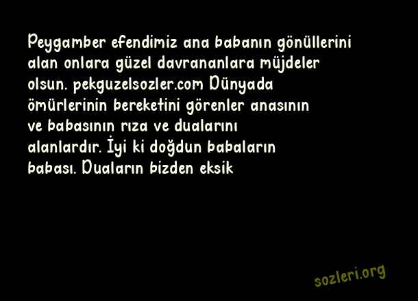 Peygamber efendimiz ana babanın gönüllerini alan onlara güzel davrananlara müjdeler olsun. Dünyada ömürlerinin bereketini görenler anasının ve babasının rıza ve dualarını alanlardır. İyi ki doğdun babaların babası. Duaların bizden eksik ( Kızdan Babaya Doğum Günü )