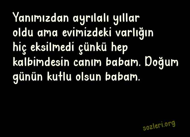 Yanımızdan ayrılalı yıllar oldu ama evimizdeki varlığın hiç eksilmedi çünkü hep kalbimdesin canım babam. Doğum günün kutlu olsun babam. ( Ölen Babaya Doğum Günü )
