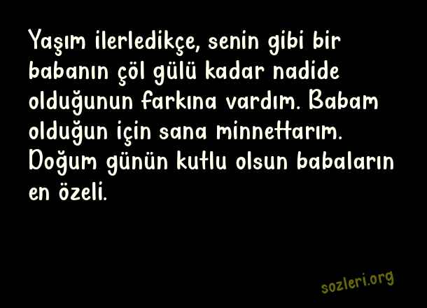 Yaşım ilerledikçe, senin gibi bir babanın çöl gülü kadar nadide olduğunun farkına vardım. Babam olduğun için sana minnettarım. Doğum günün kutlu olsun babaların en özeli. ( Kızdan Babaya Doğum Günü )