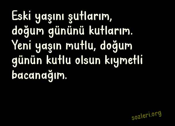 Eski yaşını şutlarım, doğum gününü kutlarım. Yeni yaşın mutlu, doğum günün kutlu olsun kıymetli bacanağım. ( Bacanağa Doğum Günü )
