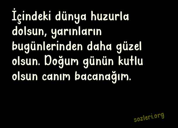 İçindeki dünya huzurla dolsun, yarınların bugünlerinden daha güzel olsun. Doğum günün kutlu olsun canım bacanağım. ( Bacanağa Doğum Günü )
