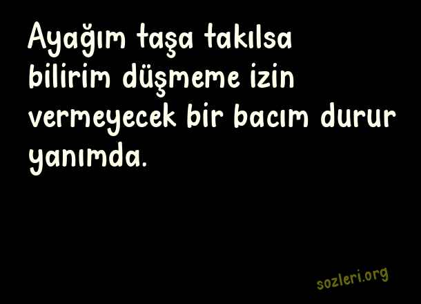 Ayağım taşa takılsa bilirim düşmeme izin vermeyecek bir bacım durur yanımda. ( Bacıya Güzel Sözler )