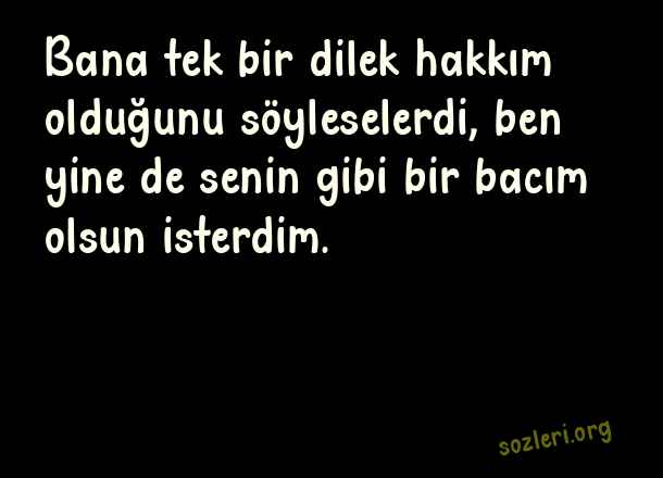 Bana tek bir dilek hakkım olduğunu söyleselerdi, ben yine de senin gibi bir bacım olsun isterdim. ( Bacıya Güzel Sözler )