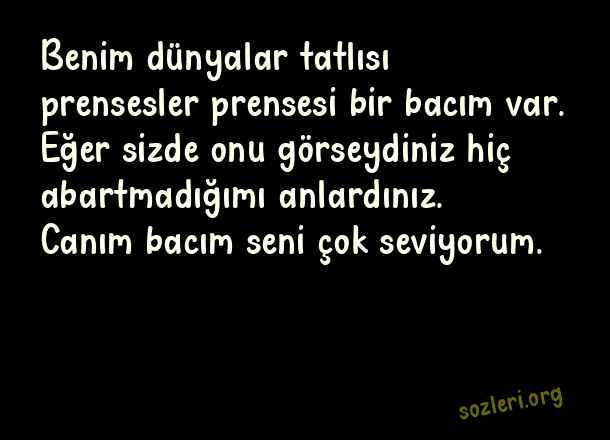 Benim dünyalar tatlısı prensesler prensesi bir bacım var. Eğer sizde onu görseydiniz hiç abartmadığımı anlardınız. Canım bacım seni çok seviyorum. ( Bacıya Güzel Sözler )