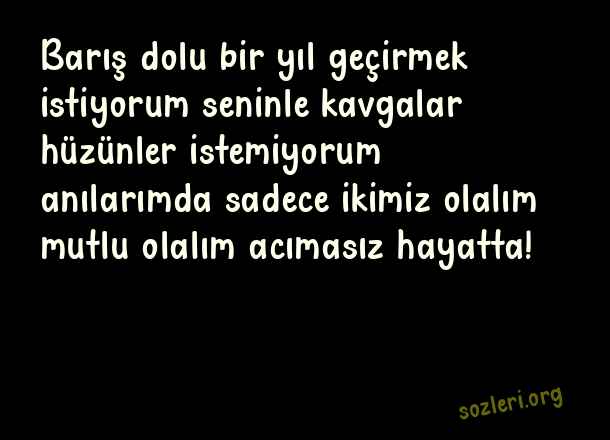 Barış dolu bir yıl geçirmek istiyorum seninle kavgalar hüzünler istemiyorum anılarımda sadece ikimiz olalım mutlu olalım acımasız hayatta! ( Barışma )
