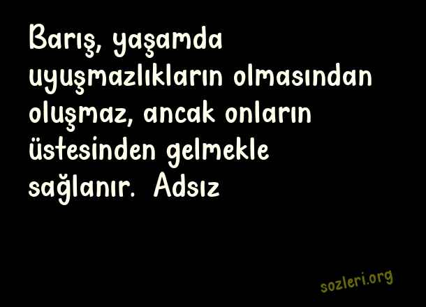Barış, yaşamda uyuşmazlıkların olmasından oluşmaz, ancak onların üstesinden gelmekle sağlanır. Adsız ( 1 Eylül Dünya Barış Günü )