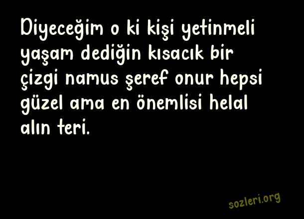 Diyeceğim o ki kişi yetinmeli yaşam dediğin kısacık bir çizgi namus şeref onur hepsi güzel ama en önemlisi helal alın teri. ( Barış Manço )