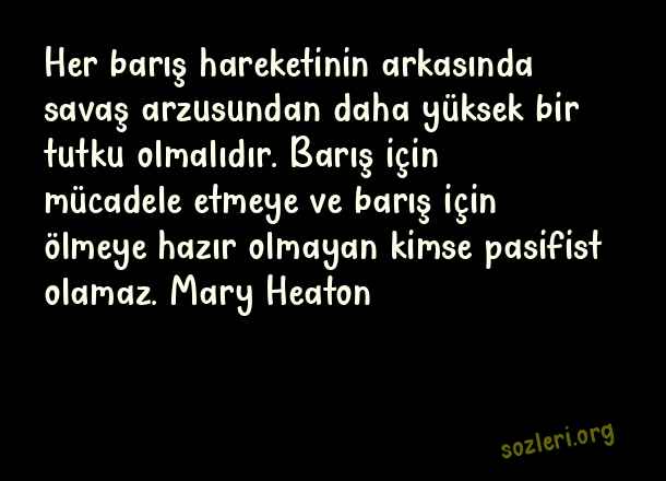 Her barış hareketinin arkasında savaş arzusundan daha yüksek bir tutku olmalıdır. Barış için mücadele etmeye ve barış için ölmeye hazır olmayan kimse pasifist olamaz. Mary Heaton ( Barış )