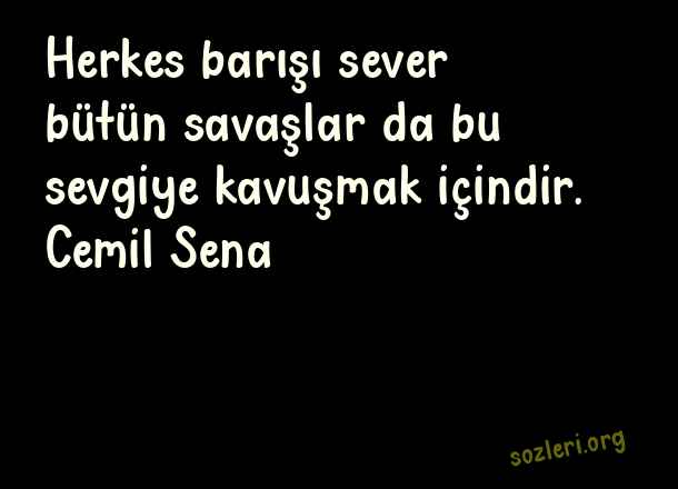 Herkes barışı sever bütün savaşlar da bu sevgiye kavuşmak içindir. Cemil Sena ( Barış )