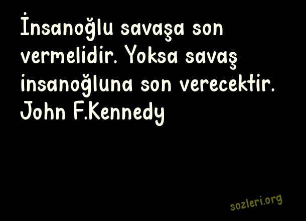 İnsanoğlu savaşa son vermelidir. Yoksa savaş insanoğluna son verecektir. John F.Kennedy ( 1 Eylül Dünya Barış Günü )