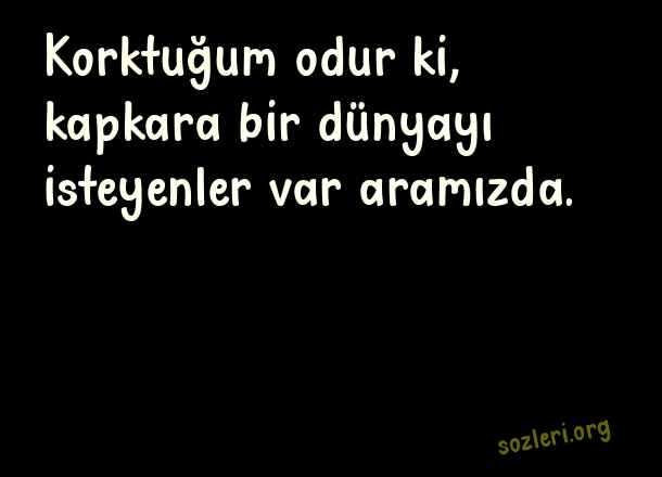 Korktuğum odur ki, kapkara bir dünyayı isteyenler var aramızda. ( Barış Manço )