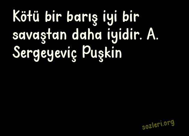 Kötü bir barış iyi bir savaştan daha iyidir. A. Sergeyeviç Puşkin ( Barış )