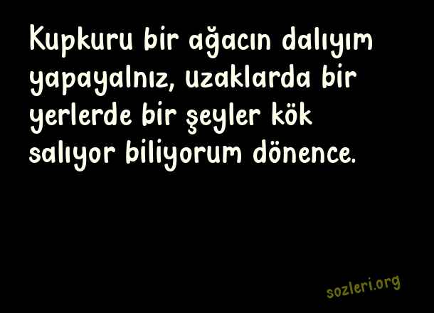 Kupkuru bir ağacın dalıyım yapayalnız, uzaklarda bir yerlerde bir şeyler kök salıyor biliyorum dönence. ( Barış Manço )