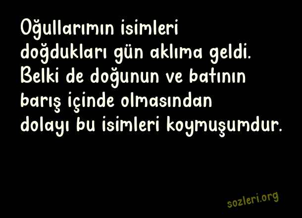 Oğullarımın isimleri doğdukları gün aklıma geldi. Belki de doğunun ve batının barış içinde olmasından dolayı bu isimleri koymuşumdur. ( Barış Manço )