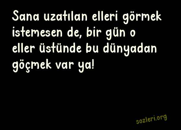 Sana uzatılan elleri görmek istemesen de, bir gün o eller üstünde bu dünyadan göçmek var ya! ( Barış Manço )
