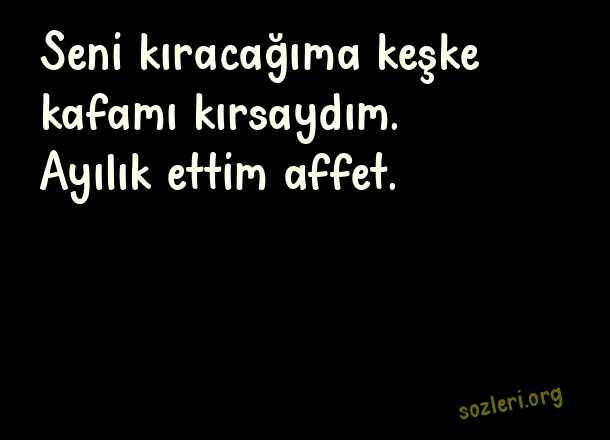 Seni kıracağıma keşke kafamı kırsaydım. Ayılık ettim affet. ( Barışma )