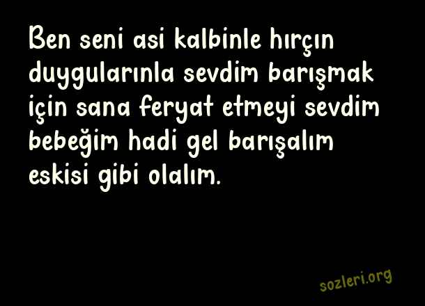 Ben seni asi kalbinle hırçın duygularınla sevdim barışmak için sana feryat etmeyi sevdim bebeğim hadi gel barışalım eskisi gibi olalım. ( Barışma )