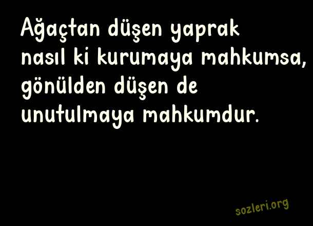 Ağaçtan düşen yaprak nasıl ki kurumaya mahkumsa, gönülden düşen de unutulmaya mahkumdur. ( Başlamadan Biten Aşk )