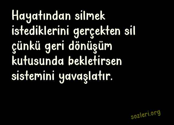 Hayatından silmek istediklerini gerçekten sil çünkü geri dönüşüm kutusunda bekletirsen sistemini yavaşlatır. ( Başlamadan Biten Aşk )
