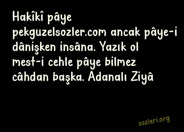 Hakîkî pâye ancak pâye-i dânişken insâna. Yazık ol mest-i cehle pâye bilmez câhdan başka. Adanalı Ziyâ ( Berceste Beyitler )