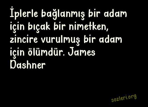 İplerle bağlanmış bir adam için bıçak bir nimetken, zincire vurulmuş bir adam için ölümdür. James Dashner ( Zincirleri Kırmak )