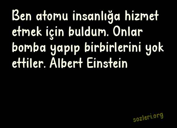 Ben atomu insanlığa hizmet etmek için buldum. Onlar bomba yapıp birbirlerini yok ettiler. Albert Einstein ( Bilim İnsanlarının )