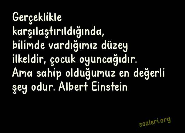 Gerçeklikle karşılaştırıldığında, bilimde vardığımız düzey ilkeldir, çocuk oyuncağıdır. Ama sahip olduğumuz en değerli şey odur. Albert Einstein ( Bilim İnsanlarının )