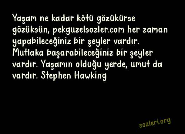 Yaşam ne kadar kötü gözükürse gözüksün, her zaman yapabileceğiniz bir şeyler vardır. Mutlaka başarabileceğiniz bir şeyler vardır. Yaşamın olduğu yerde, umut da vardır. Stephen Hawking ( Bilim İnsanlarının )